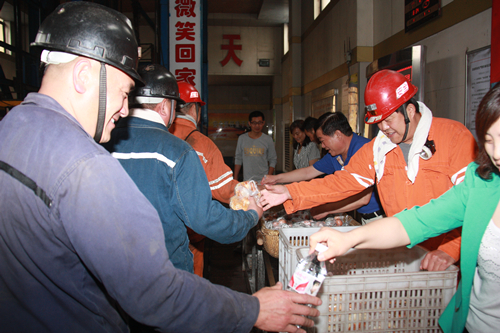 矿工们吃着香甜的粽子,聆听着矿领导及女工协管员一句句情真意切的安全叮咛,表情十分激动,其中一位矿工说:"女工们也真不容易,大热天给我们送粽子、送饮料,又嘱咐我们下井要注意安全,跟家人一样贴心,我感到很温暖"。他们纷纷表示,在目前特困形势下,一定不辜负矿领导及全矿女工姐妹的殷切期望,坚决上标准岗,干标准活,做安全人,为企业、为家庭创造安全和谐环境,在安全生产工作中做出新的更大贡献。