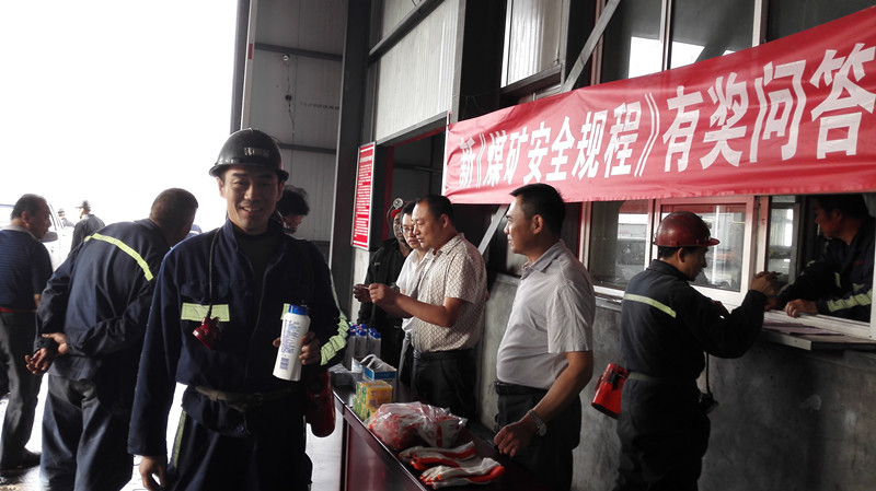 此次有奖问答活动主要是针对新《煤矿安全规程》新增或修改的知识点,在井口采取现场提问、随机抽题等方式,对上下井的职工进行考问。对回答正确的职工发放手套、洗发水、香皂、透明皂等小奖品进行奖励,对回答不正确的同志进行批评教育,并要求其对所要回答题目的答案大声朗读三遍,也给予发放一双手套作为鼓励奖。活动共发放18双手套,20个香皂,20个透明皂,34瓶洗发水,职工正确回答率达到80%以上。寓教于乐的方式,使职工在轻松的氛围中加深了对新《煤矿安全规程》的学习和理解。