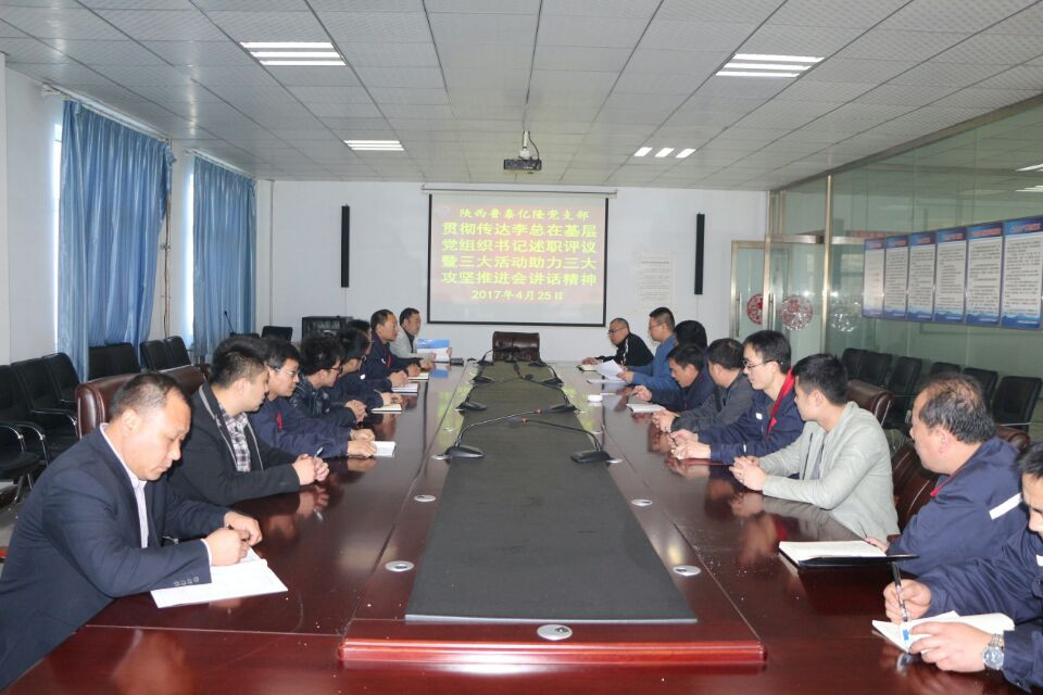 4月25日,陕西开云(中国)党总支结合"两学一做"学习教育,组织各党支部认真学习开云在线登录公司基层党组织书记述职评议暨"三大活动"、助力"三大攻坚"推进会精神。