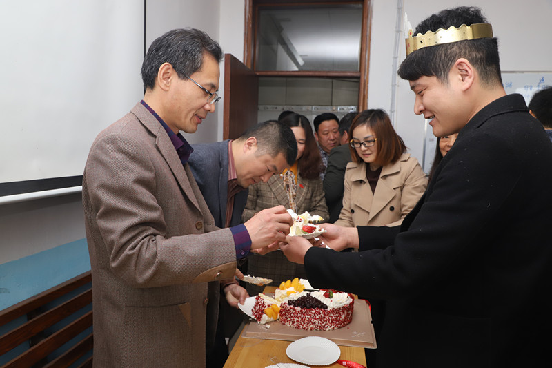4月12日下午,太平煤矿劳资教育科、工会办公室负责人和工会工作人员带着精心备好的生日蛋糕来到采煤三工区会议室,为该工区职工田兴庆祝29周岁生日。
