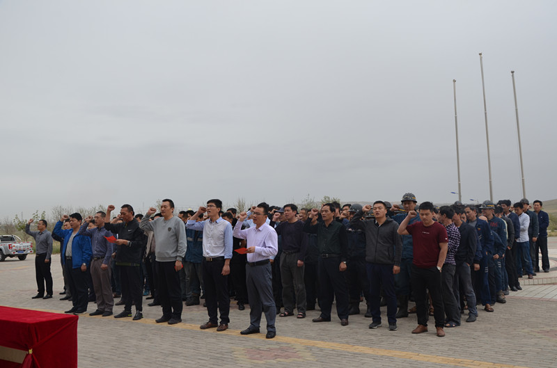 刘炳法宣布2018年度宁夏开云(中国)"安全生产月"活动正式启动。副总经理赵令金带领全体参会人员进行安全宣誓,总经理助理张峰主持启动仪式。