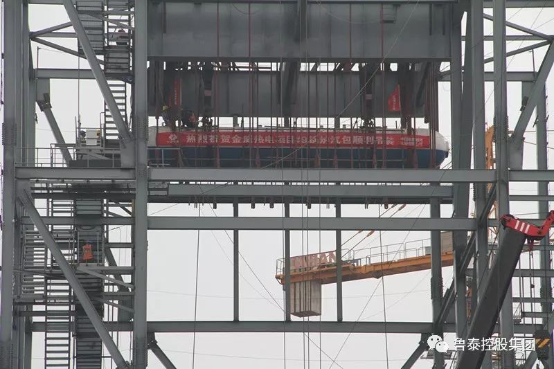吊装开始后,在现场施工人员与指挥人员的密切配合下,经过约一个半小时的连续施工,汽包顺利就位,这是继完成8#锅炉汽包吊装后的又一里程碑工程节点。