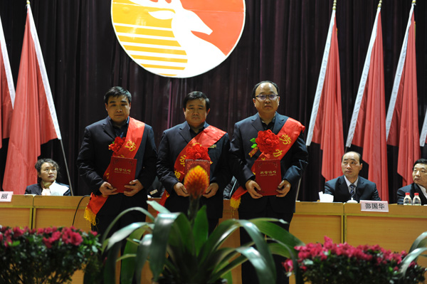 纪委书记王丽宣读了《关于表彰二0一二年度矿劳模、标兵、先进集体和先进生产(工作)者的决定》、《关于表彰二0一二年度优秀党支部、优秀党支部书记、优秀共产党员的决定》、《关于表彰二0一二年度"宣传思想工作优秀单位"等奖项获得者的决定》、《关于表彰二0一二年度先进群监分会、先进青安分岗、先进女工协管分会、优秀群监员、优秀青安岗员、优秀女工协管员的决定》、《关于表彰二0一二年度优秀团支部、优秀团支部书记、优秀团员的决定》,随后进行了颁奖仪式。