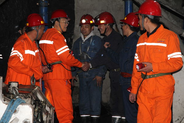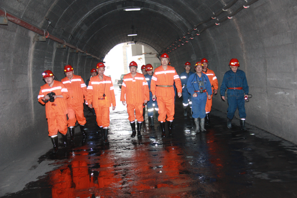 11月23日上午9时,李合军一行到达百吉项目部,受到项目部同志的热烈欢迎。李合军与大家一一握手致意,互相问候。在简短参观了新落成的职工澡堂、调度室和灯房后,李合军不顾舟车劳顿,未作片刻休息,换上工作服,步行入井,实地查看工作开展情况。