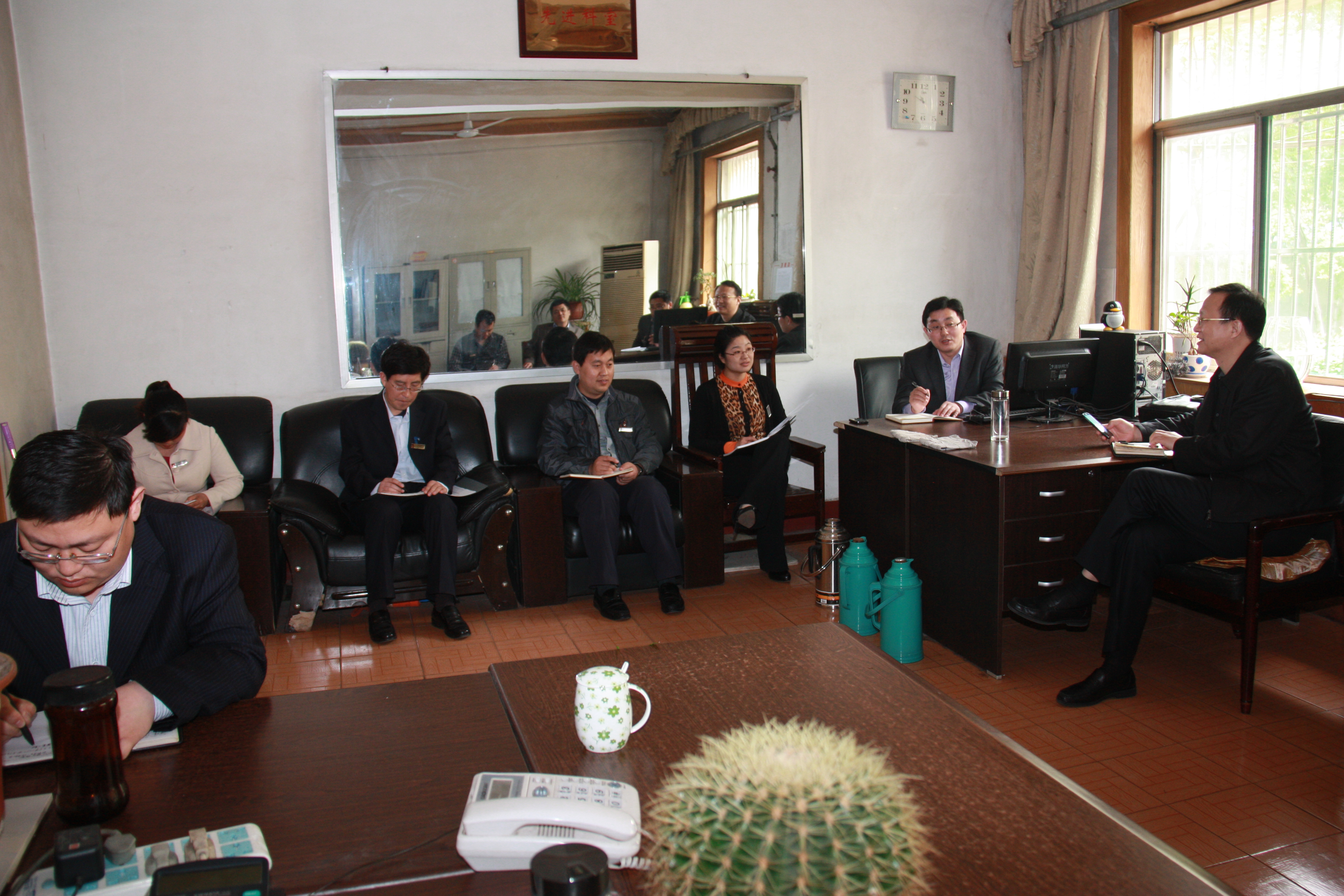 到矿后,李合军首先听取了太平煤矿党委书记汤保民关于该矿教育实践活动开展情况的专题汇报。李合军对太平煤矿教育实践活动开展情况以及取得的初步成效给予肯定。随后,听取了班子成员对开云(中国)煤业公司领导班子和班子成员"四风"方面的意见建议。接着,李合军来到矿物业管理办公室,与矿财务科、安全科、生产技术科、仓库、销售科、企业管理科、供应科、机电科等科室负责人进行座谈,听取意见建议。最后,李合军来到矿副井等候室,与生产区队和职工代表进行座谈,对群众提出的意见给予解答。