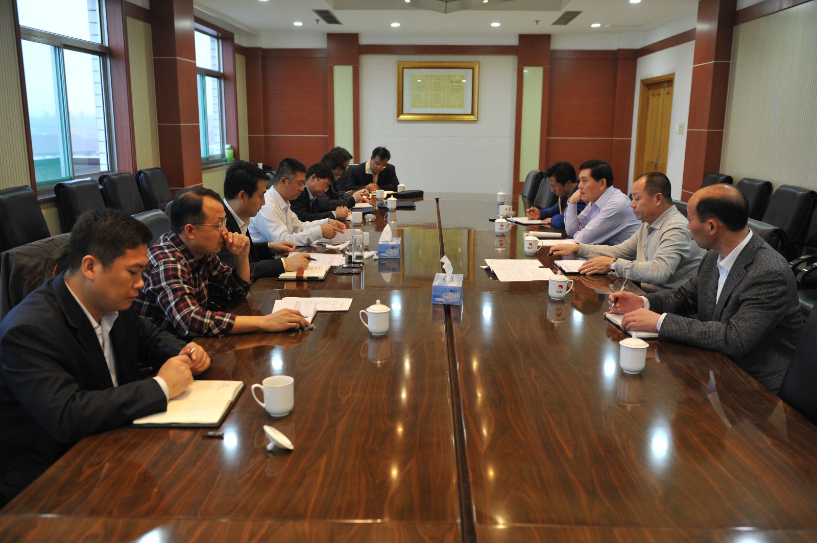 升井后,公司保包组首先反馈了井下安全检查情况,王付清对鹿洼煤矿安全生产及工程质量管理给予充分肯定。张运宪汇报了矿井高度重视扎实开展 "转作风、保安全、提效益、促稳定"活动情况。