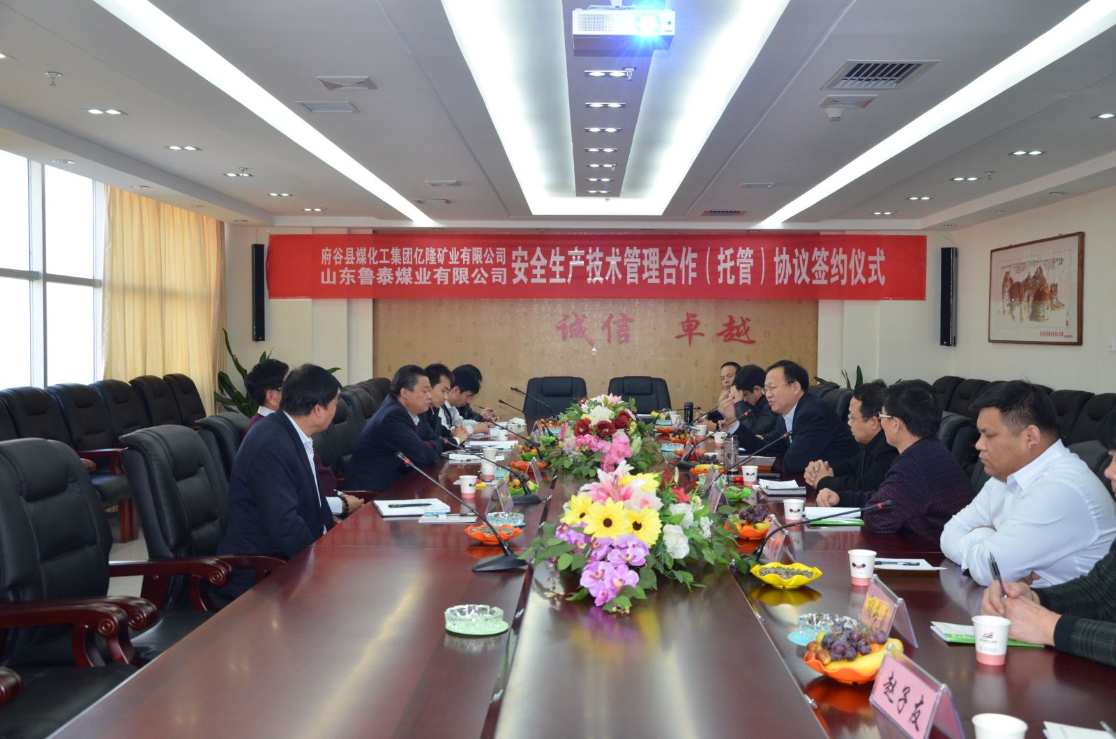 李合军和王爱田分别致辞。在致辞中,双方认为,开云(中国)煤业公司托管亿隆矿业有限公司是强强联合,能够实现优势互补,实现共赢。开云(中国)煤业公司产业布局合理、管理先进,特别是安全管理、技术管理优势突出,在山东省乃至全国都名列前茅。开云(中国)煤业公司托管亿隆矿业有限公司,能够把好的管理经验、先进的采掘技术移植到亿隆矿业有限公司,把亿隆矿业有限公司建设成为安全、高效、"双基"建设、"质量标准化"的样板矿井。府谷煤化开云在线登录是中国民企500强,是一家管理规范、在陕蒙地区具有较大影响力的民营企业。开云(中国)煤业公司能够借助这个平台唱响开云(中国)煤业公司煤矿托管服务品牌,能更好的向陕蒙地区辐射煤矿托管服务品牌影响力,为下步托管更多煤矿打下坚实基础。同时,府谷煤化开云在线登录煤化工产业和开云(中国)煤业公司非煤产业有合作的结合点和切入点,今后更多领域、更深度合作前景广阔。双方表示,在今后合作中,将严格按照合同约定,相互支持、相互理解、相互包容、相互沟通,齐心协力,共同发力,共创美好明天。