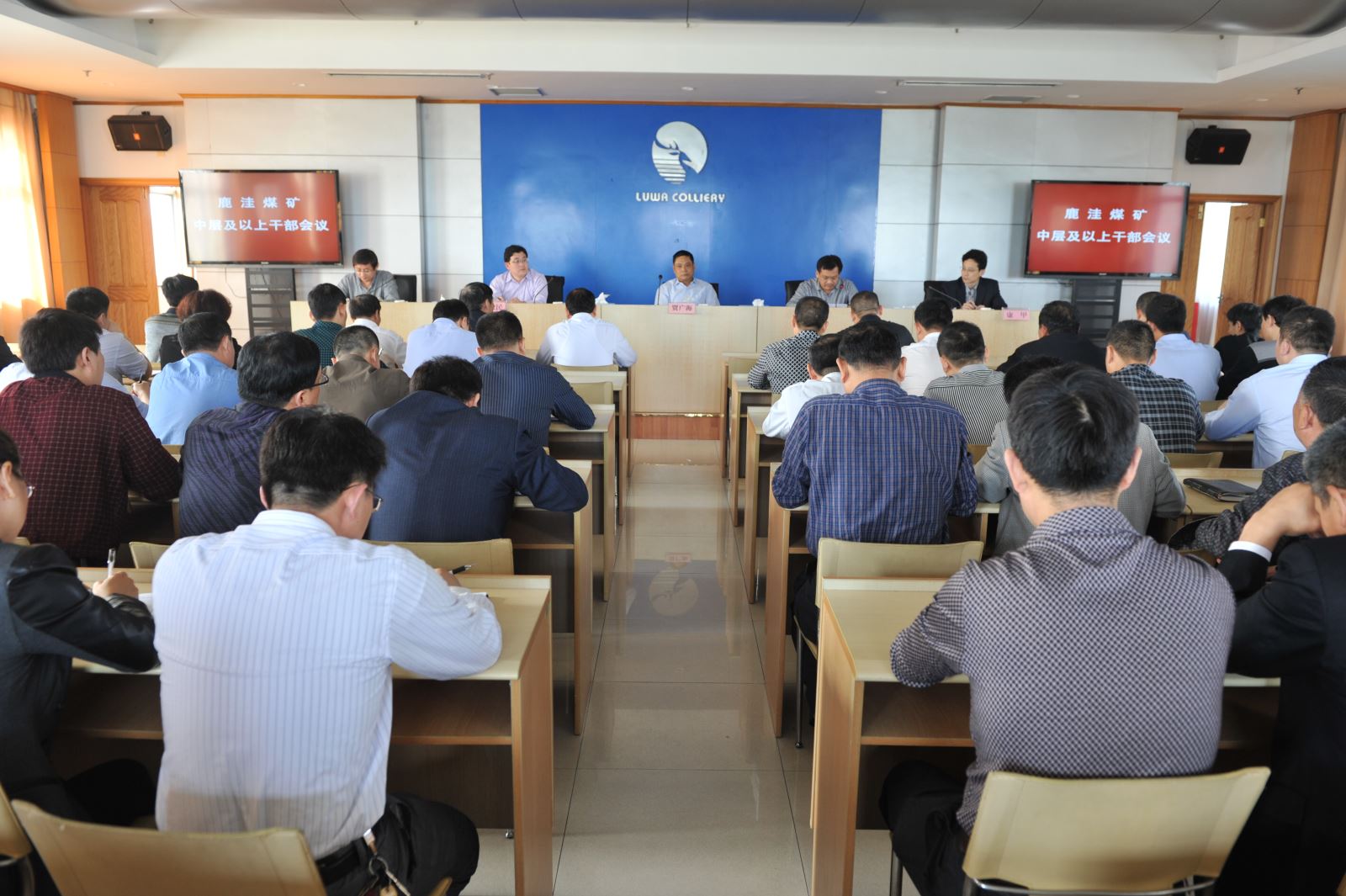 5月1日上午8时30分,鹿洼煤矿召开了全体中层干部及部分职工代表会议。矿上邀请公司政治部主任张敬民、人力资源部经理康甲等6人组成竞聘工作指导小组,对竞聘全过程进行现场监督并负责计算各项得分。矿党委书记刘岭主持会议。纪委书记王端焕传达了《中层干部竞聘方案》、《机构设备调整和中层岗位定职定员的通知》。矿长贾广海作动员讲话。贾广海指出,一是把握大势,充分认识公开竞聘的重要性和必要性。实行公开竞聘,是市委、市政府和市国资委提出的明确要求;是公司人事制度改革的重要内容;更是我矿应对当前严峻煤炭市场形势,推进企业持续稳定发展的迫切需要。二是周密部署,精心组织,扎实做好中层管理人员公开竞聘工作。正确把握用人导向;切实规范工作程序;充分发扬民主。三是严肃纪律,客观评议。端正态度,积极支持公开竞聘;服从大局,加强组织纪律性;客观评议,公平、公正、正确划票;确保竞聘期间的稳定和安全。会议最后全体中层及以上干部、职工代表进行了民主评议。会议结束后,中层干部填写了自荐报名表,竞聘领导小组对自荐人进行了资格审查。