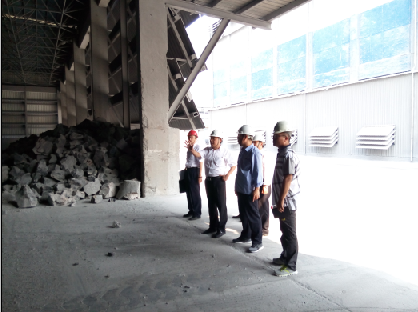 在德州实华负责人的陪同下,调研组一行深入生产现场,对盐库、化盐池、电石破碎厂房、包装厂房、中试车间等地进行了参观。