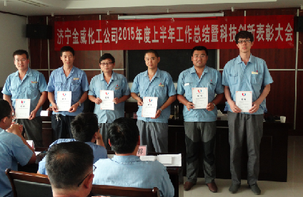 7月24日9:00,金威化工公司2015年上半年工作总结暨科技创新表彰大会在三楼会议室召开,会议传达学习了开云在线登录公司内部市场化建设推进工作会会议精神,副总经理吴艳蕊宣读了科技创新和优秀合理化建议表彰决定,对2014年度在科技创新、小改小革、合理化建议等方面表现突出的先进集体和先进个人进行表彰奖励。公司总经理申玉海出席会议并作重要讲话。