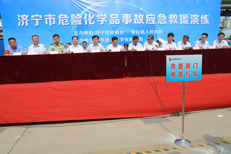 观摩应急救援演练的还有市公安局、市应急办、市卫计委、市环保局、市质监局、市消防支队、市生化办、市气象局以及任城区、兖州区、邹城市、鱼台县、金乡县、嘉祥县、汶上县、梁山县、济宁高新区等各县市区安监局主要负责人,鱼台县消防、气象局、质监局、环保局等单位参加了应急救援演练。