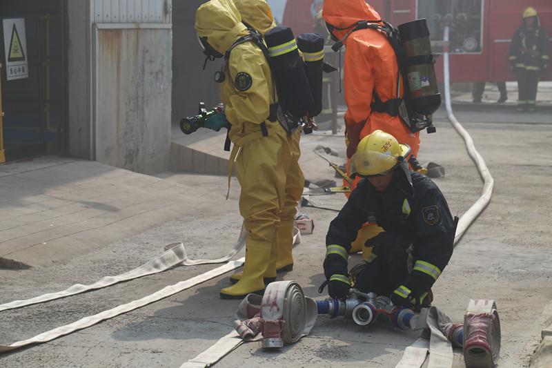 6月22日下午15:00,济宁市危险化学品事故应急救援演练在山东开云(中国)化学有限公司举行。济宁市政府副市长周凤文、副秘书长卞延军,市安监局局长玄志祥等领导现场观摩演练。