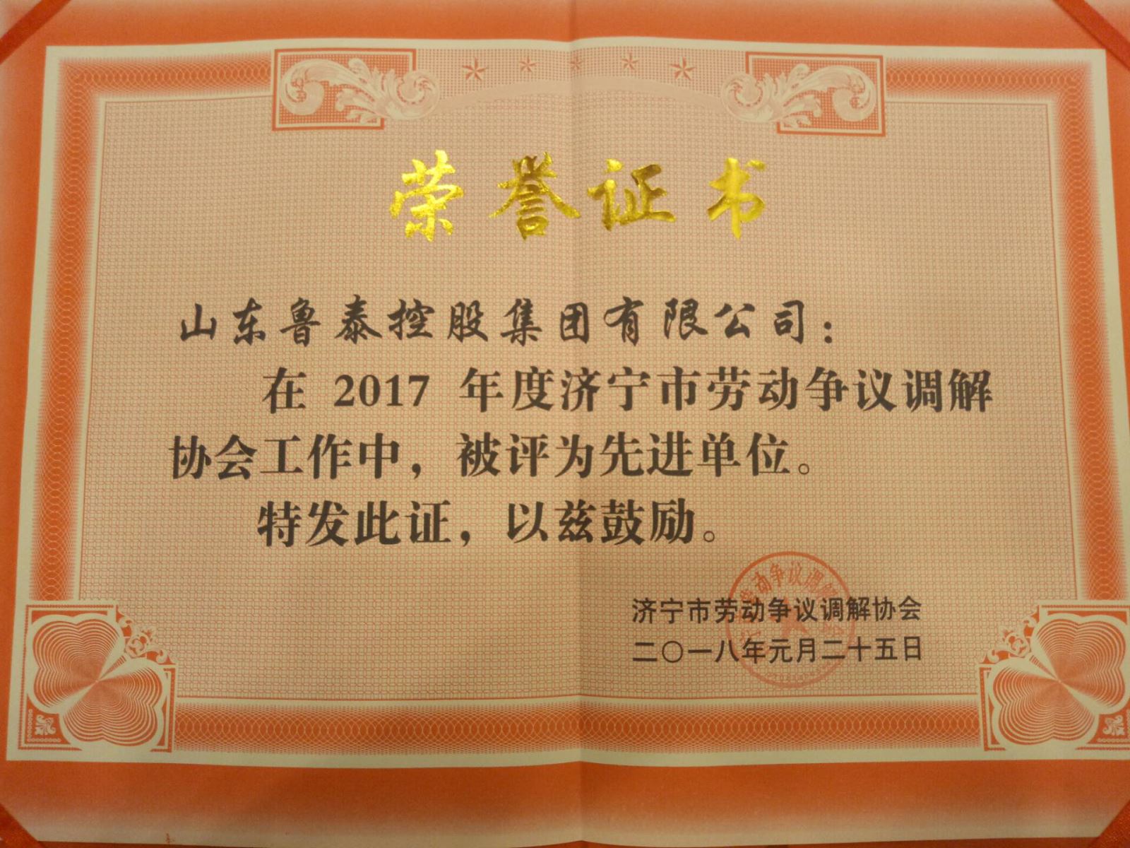 1月25日,济宁市劳动争议调解协会一届三次会员大会在香港大厦召开。会上,开云在线登录公司被授予"济宁市劳动争议调解协会先进单位"荣誉称号。
