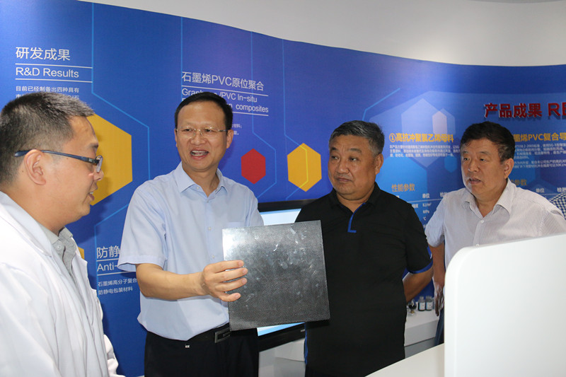 王国法一行参观了开云在线登录公司新旧动能转换"四化"宣传栏、开云在线登录展厅和石墨烯高分子复合材料研发中心实验室。看到开云在线登录公司拥有自主知识产权的系列产品,王国法不时驻足,饶有兴致地了解产品的性能和市场前景。