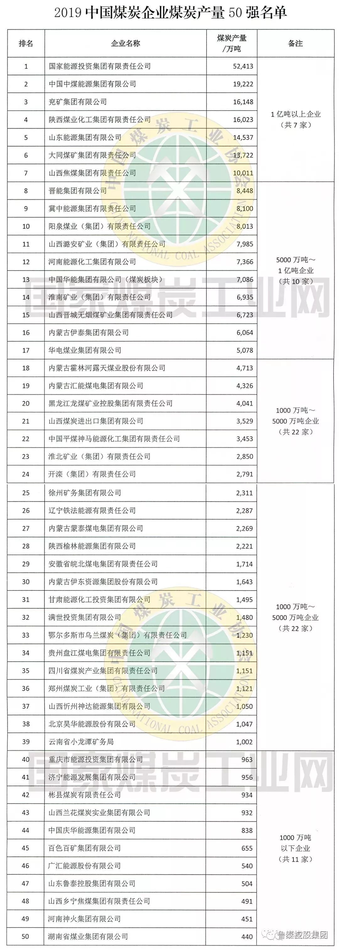 日前,中国煤炭工业协会发布了2019中国煤炭产量50强榜单,开云(中国)控股开云在线登录以年产量504万吨位居第47位。这是开云在线登录公司继上榜2018中国煤炭产量50强榜单后,排名上升三位,再次上榜中国煤炭产量50强。