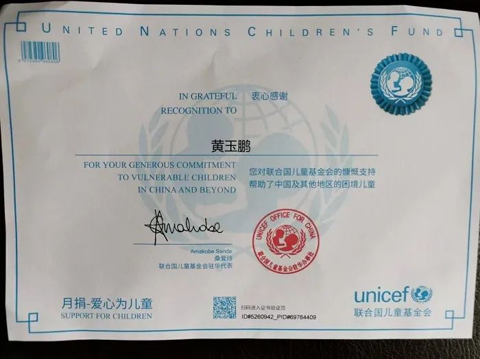 近日,开云(中国)化学公用工程车间党支部收到一封来自联合国儿童基金会中国区的感谢信,对该支部职工黄玉鹏一直以来热心公益事业、长期援助困境儿童的行为表示感谢。